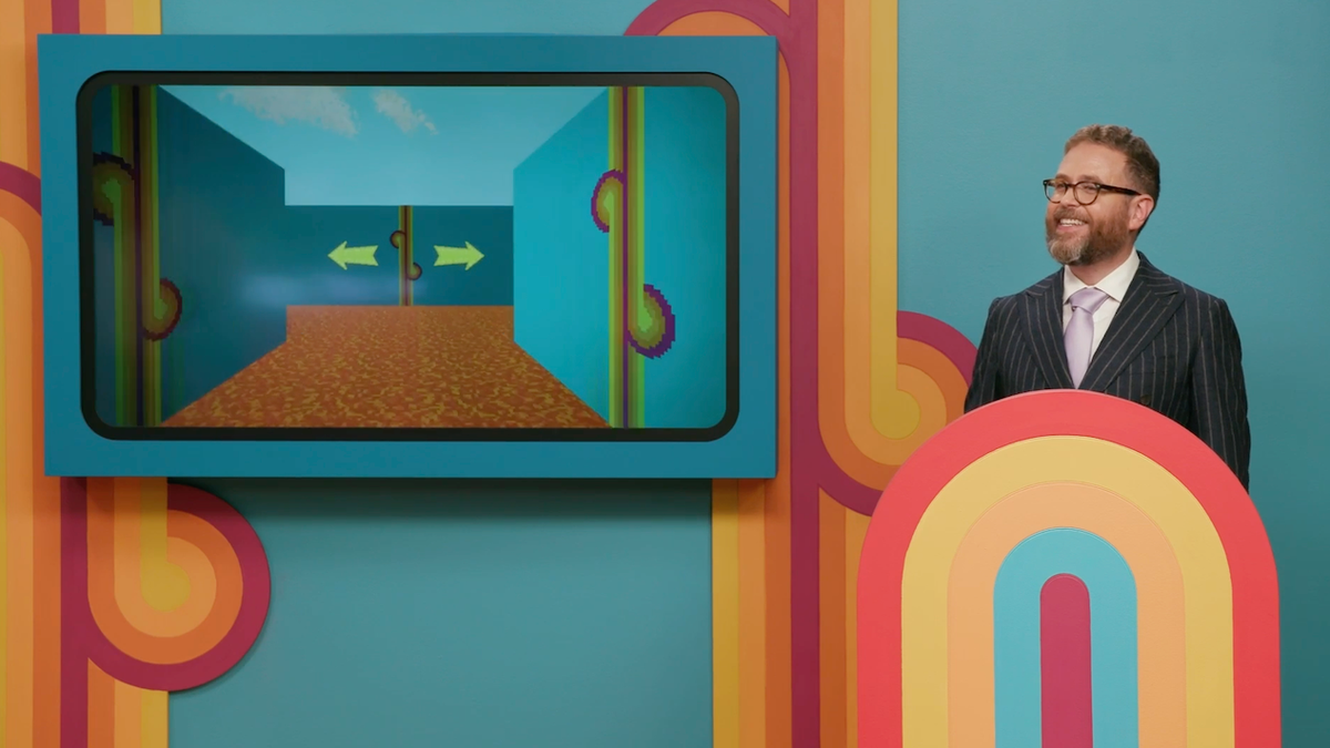 Comme d’autres épisodes de la série – dont le principe est que les participants au jeu doivent jouer des changements à chaque fois – une grande partie de la joie de « Déjà Vu » vient du fait de regarder les participants comprendre la tournure de la signature et travailler pour déjouer l’hôte Reich. Le bien intitulé « Déjà Vu » oppose trois concurrents dans une série de défis qu’ils doivent répéter encore et encore. Parmi les défis tels que résoudre des problèmes mathématiques ou répondre à des questions générales, l’un d’eux a demandé aux joueurs de naviguer dans un labyrinthe de jeu vidéo, dont le thème correspondait à la scénographie colorée de la série.