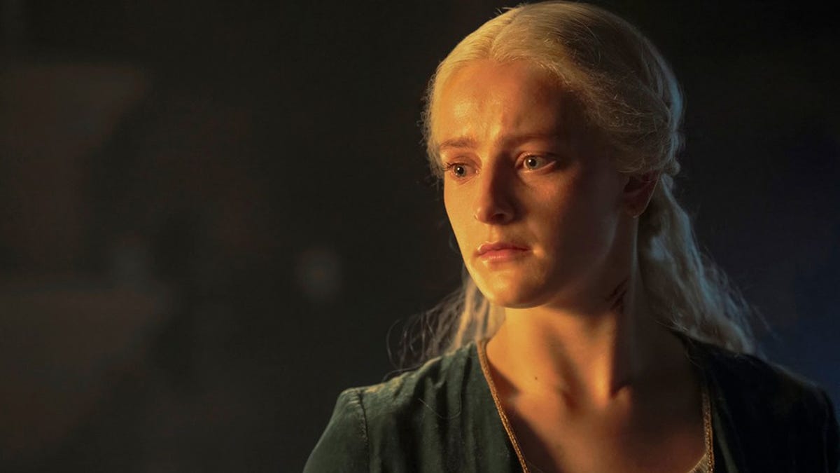 Sur la base du message, que vous pouvez lire sous forme archivée iciMartin a pris au sérieux la façon dont Maison du Dragon les showrunners ont changé un moment connu des fans de Feu et sang comme « Sang et Fromage ». Dans le spectaclela reine Helaena est abordée dans le château par deux intrus, qui lui demandent de lui montrer lequel de ses deux jeunes enfants est un garçon, apparemment pour pouvoir assassiner l’héritier du trône de fer. Elle leur offre son collier en tremblant, mais quand ils persistent, elle désigne Jaehaerys, son fils, que l’intrus assassine rapidement.